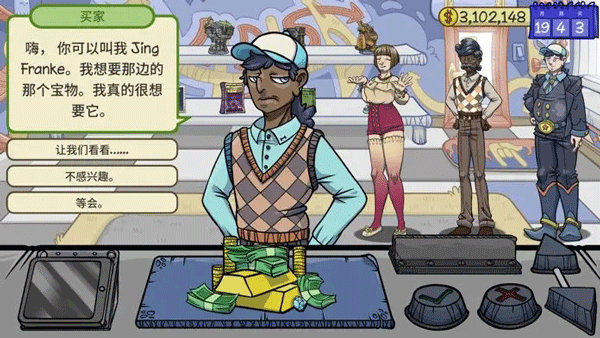 游戏延续美式卡通画风,融入影视与游戏爆笑梗增添趣味,搭载智能谈判引擎实现动态对话交互。随机突发事件与假货鉴别机制保留策略深度,无限货币则让玩家专注经营策略与剧情探索,无需为资金卡关。